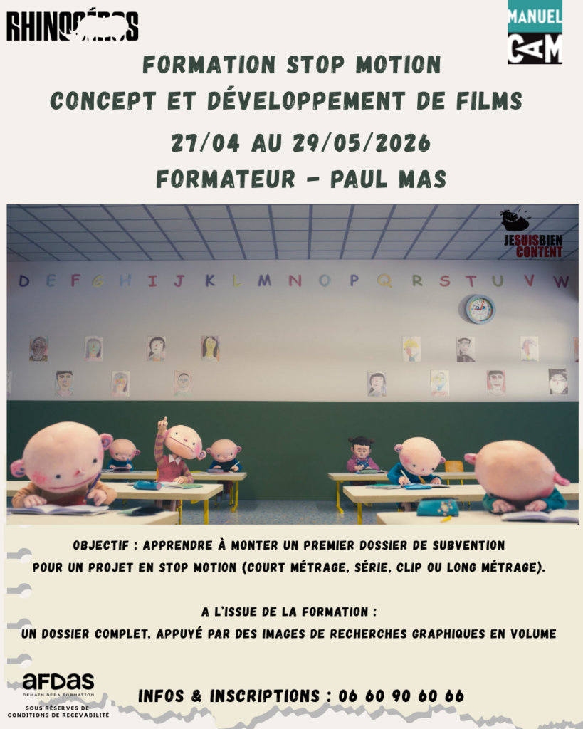 Objectifs | La connaissance des différentes aides à l’écriture et au concept. Un dossier de concept comprenant une première mouture d’un synopsis complet, une note d’intention ainsi que des recherches graphiques en volume abouties comprenant une marionnette, un décor et une image de la marionnette dans un décor mis en lumière. La formation est orientée vers les projets d’animation en stop motion. Il n’est pas nécessaire de connaître les techniques de fabrication de l’animation en volume pour postuler à la formation. |
